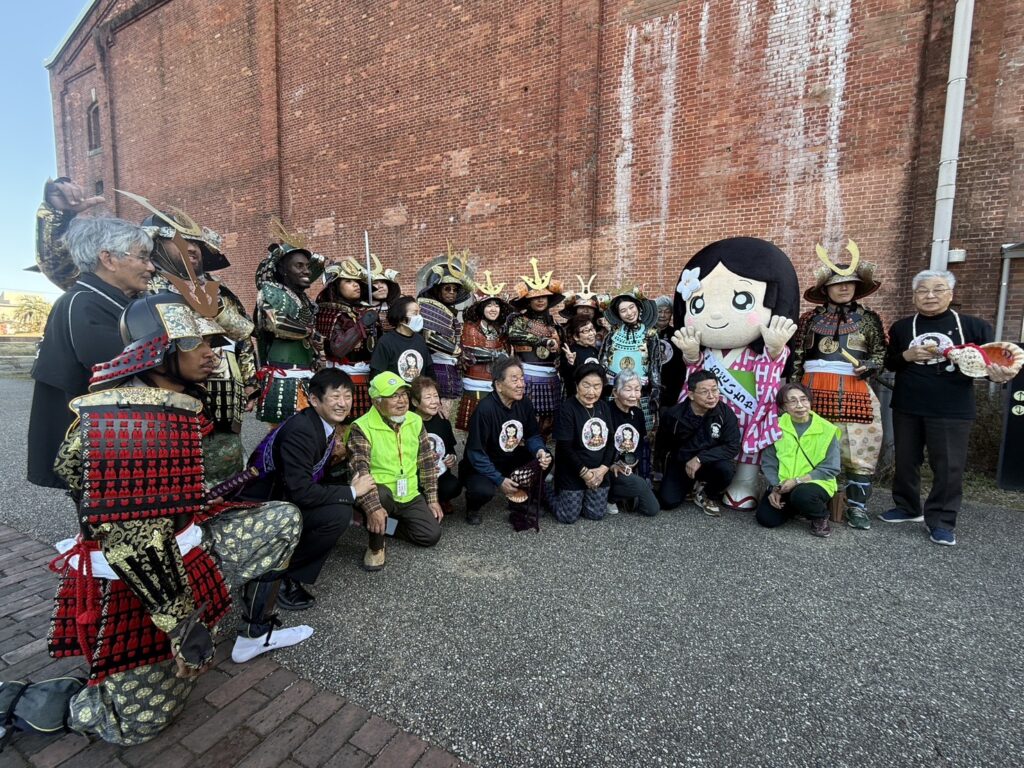 2月28日半田赤レンガにて「世界青年の船」で来日した、海外24名のお客さんに英語での史跡案内と、手作り鎧の着付け体験を行いました。